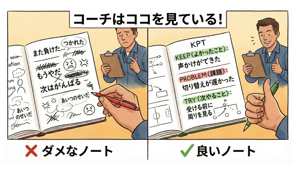 ビジネスでも使われる「KPT法」はサッカーノートに最適です。